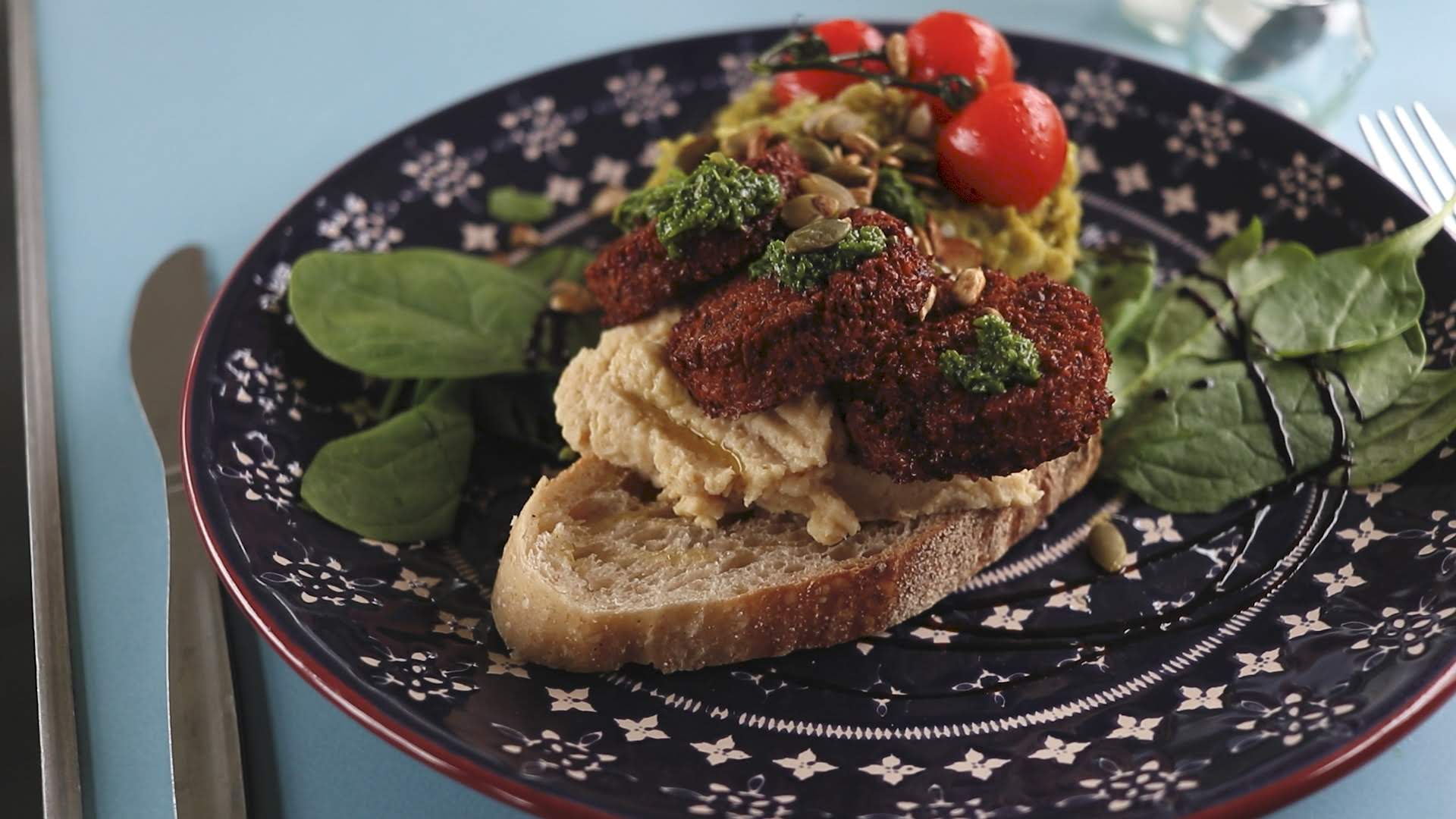 Simon & Jodie love breakfast. Their Hashed Mounds are a brunch delight consisting of a potato rosti topped with local and seasonal ingredients including a house/bus speciality - “mumbled eggs.”